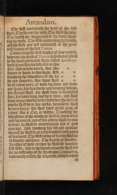 The most excellent, profitable, and pleasant booke of the famous doctor and expert astrologian, Arcandam, or Alcandrin, to finde the fatall destiny, constellation, complexion, and naturall inclination of every man and child by his birth. With an addition of Physiognomie ... / Now newly turned out of French ... by William Warde.