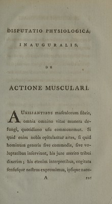 Credit: Disputatio physiologica, inauguralis, de actione musculari ... / Eruditorum examini subjicit Jacobus Mackintosh ... ex agro Innernessano, Scotus. Source: Wellcome Collection.