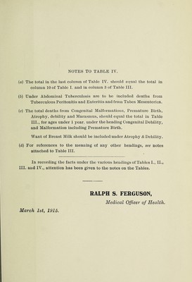Credit: [Report 1914] / Medical Officer of Health, Calne R.D.C. Source: Wellcome Collection.
