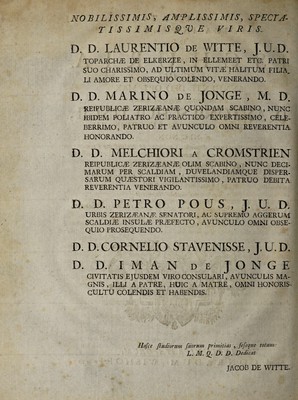 Disputatio medica inauguralis de ischuria ... ex auctoritate ... Antonii Schultingii ... / submittit Jacob de Witte.
