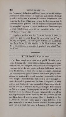 Lettres de Gui Patin / Nouvelle édition augmentée de lettres inédites, précédée d'une notice biographique, accompagnée de remarques scientifiques, historiques, philosophiques et littéraires, par J.-H. Reveillé-Parise.