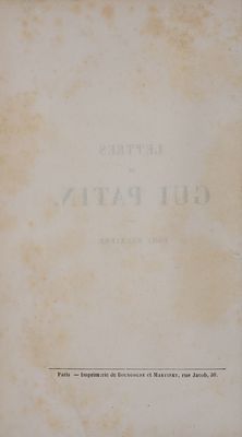 Lettres de Gui Patin / Nouvelle édition augmentée de lettres inédites, précédée d'une notice biographique, accompagnée de remarques scientifiques, historiques, philosophiques et littéraires, par J.-H. Reveillé-Parise.