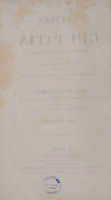 Credit: Lettres de Gui Patin / Nouvelle édition augmentée de lettres inédites, précédée d'une notice biographique, accompagnée de remarques scientifiques, historiques, philosophiques et littéraires, par J.-H. Reveillé-Parise. Source: Wellcome Collection.