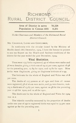 Credit: [Report 1924] / Medical Officer of Health, Richmond (Yorkshire) R.D.C. Source: Wellcome Collection.