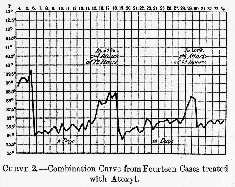 M0013359: Graph showing temperature curves of relapsing fever cases. In copyright. Source: Wellcome Collection.
