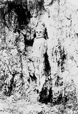 M0015466: Human figure sculpted from limestone column in a Jamaican cave, prehistoric