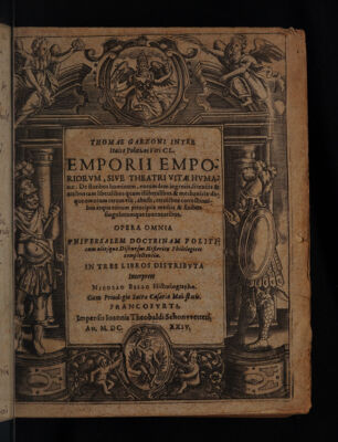 Emporii emporiorum, sive theatri vitae humanae: de statibus hominum, eorumdem ingeniis, scientiis et artibus ... Opera omnia, universalem doctrinam politicam aliosque discursus historico philologicos complectentia. In tres libros distributa / Interprete N. Bello [i.e. M.C. Lundorp].