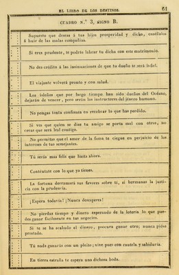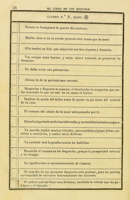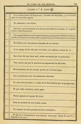 Credit: El gran libro de los oraculos, arte de adivinar la suerte presente y futura de las personas, por el método ejipcio y por el de los astros. Manuscrito hallado en las catacumbas de Ejipto ... y cuya propriedad fue esclusiva del Emperador Napoleon. Source: Wellcome Collection.