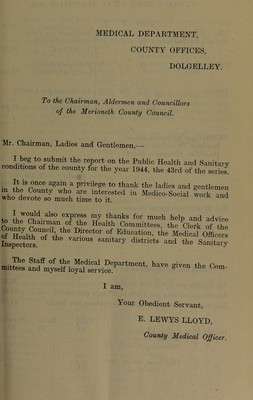 Credit: [Report 1944] / Medical Officer of Health, Merioneth County Council. Source: Wellcome Collection.