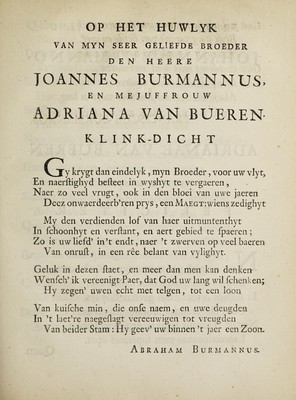 Epithalamia in nuptias ... / Johannis Burmanni ... et ... Adrianae van Bueren.