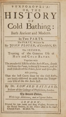 Psykhroloysia: or, the history of cold bathing: both ancient and modern. In two parts. The first ... / by Sir J.F. ... The second, treating of the genuine use of hot and cold baths ... By Dr. E. Baynard.