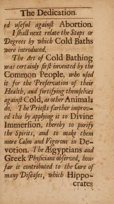 Psykhroloysia: or, the history of cold bathing: both ancient and modern. In two parts. The first ... / by Sir J.F. ... The second, treating of the genuine use of hot and cold baths ... By Dr. E. Baynard.