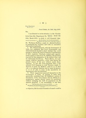 Anti-cholera inoculation : report to the Government of India / by W.M. Haffkine.