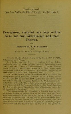 Pyonephrose, exstirpirt aus einer rechten Niere mit zwei Nierenbecken und zwei Ureteren / von K.G. Lennander.