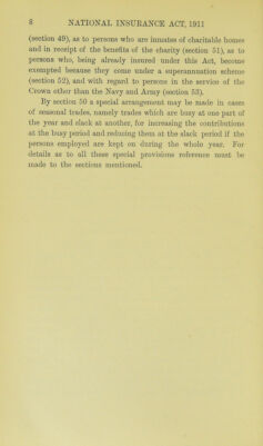 Credit: The National Insurance Act, 1911 : explained, annotated and indexed, with appendices consisting of the Insurance Commissioners' official explanatory leaflets, Treasury regulations for the joint committee, tables of reserve values and voluntary contributions, regulations for procedure by the umpire, etc / [Arthur Stanley Pringle]. Source: Wellcome Collection.