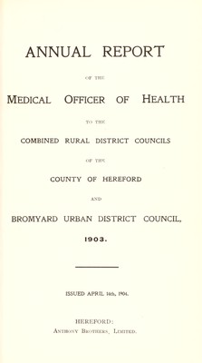 [Report 1903] / Medical Officer of Health, Herefordshire Combined District/s (Bromyard R.D.C., Dore R.D.C., Hereford R.D.C., Ledbury R.D.C., Leominster R.D.C., Bromyard U.D.C.).