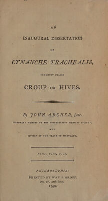 Credit: An inaugural dissertation on cynanche trachealis, commonly called croup or hives / By John Archer. Source: Wellcome Collection.