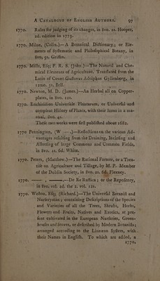 Tracts on practical agriculture and gardening... with several useful improvements in stoves and green-houses. To which is added, a chronological catalogue of English authors on agriculture, botany, gardening, etc / By R. Weston.