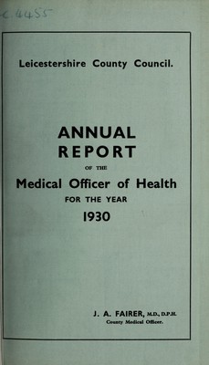 Credit: [Report 1930] / Medical Officer of Health, Leicestershire / County of Leicester County Council. Source: Wellcome Collection.
