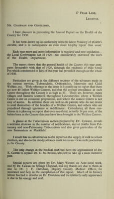 [Report 1930] / Medical Officer of Health, Leicestershire / County of Leicester County Council.