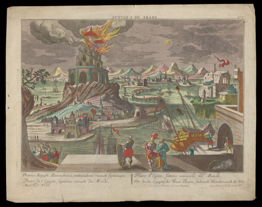 Credit: The Pharos of Alexandria. Coloured etching, 17--. Source: Wellcome Collection.