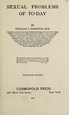 Sexual problems of today / by William J. Robinson.