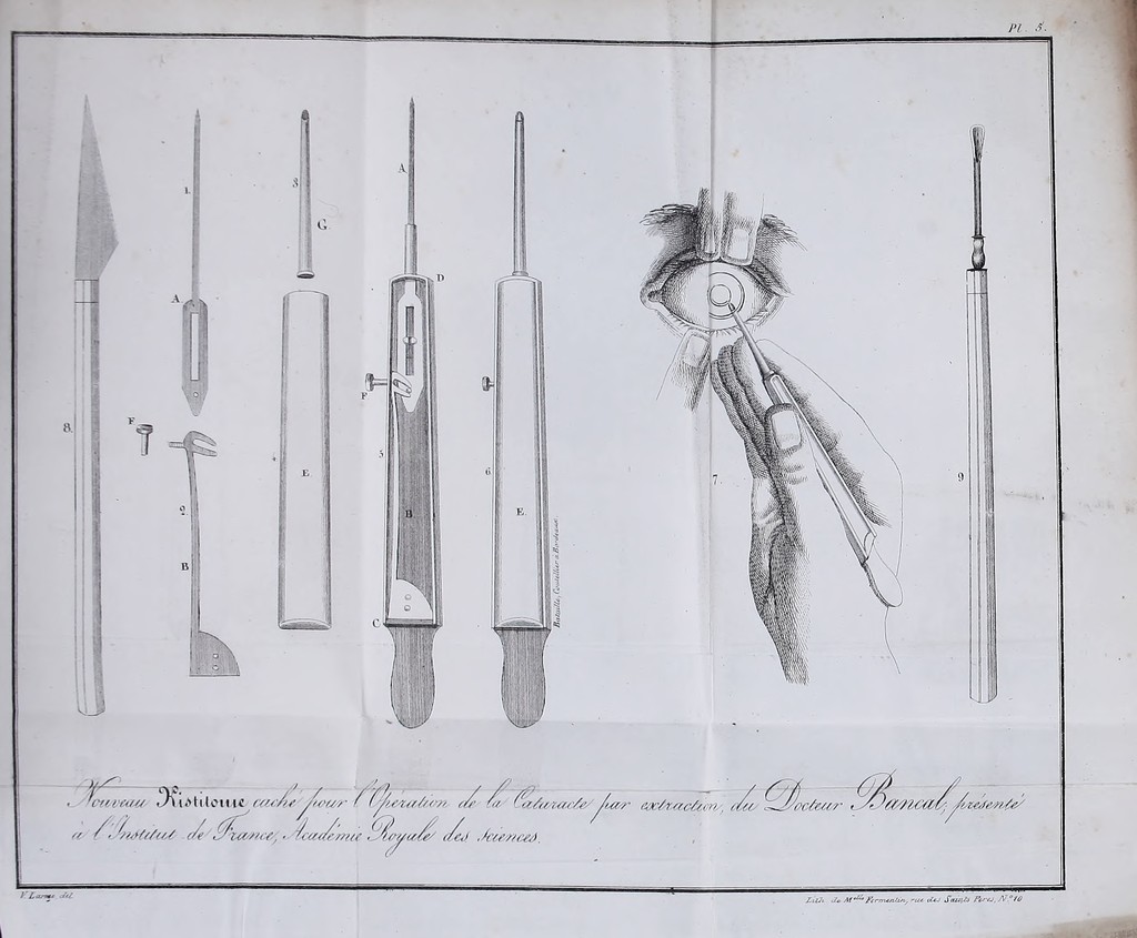 Credit: Manuel-pratique de la lithotritie ou lettres à un jeune médecin ... suivi d'un rapport ... par MM. Percy, Chaussier, Deschamps, Pelletan et Magendie, en faveur de son nouvel instrument pour l'opération de la cataracte par extraction / [Antoine Pascal Bancal]. Source: Wellcome Collection.