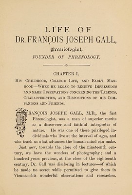 Life of Dr. Franc̦ois Joseph Gall : craniologist and founder of phrenology / by Miss Jessie A. Fowler, F.A.I., co-editor of "The phrenological magazine"; "The phrenological dictionary"; and "Phrenology proved".