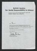 Credit: Papers of M H F Wilkins: correspondence relating to the founding of the British Society for Social Responsibility in Science. Source: Wellcome Collection.