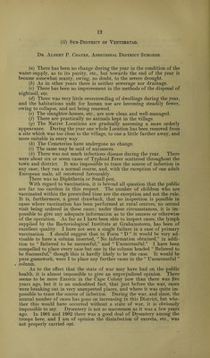![CAPE OF GOOD HOPE. REPORTS ON THE PUBLIC HEALTH FOR THE YEAR f902. INCLUDING REPORTS OE DISTRICT SURGEONS, LOCAL AUTHORITIES AND MEDICAL INSPECTORS. fwscnteb to bot[r ponses of fadiiunent bo ftommanb of fts feelleiwg tjjc ©obeciior. 1903. “ CAPE TIMES,” [G. 66—1903.] CAPE TOWN: LIMITED, GOVERNMENT PRINTERS. 1903 B 360. k](https://iiif.wellcomecollection.org/image/b3148198x_0001.jp2/full/800%2C/0/default.jpg)