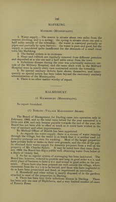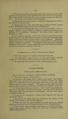 ![CAPE OF GOOD HOPE. REPORTS ON THE PUBLIC HEALTH FOR THE YEAR f902. INCLUDING REPORTS OE DISTRICT SURGEONS, LOCAL AUTHORITIES AND MEDICAL INSPECTORS. fwscnteb to bot[r ponses of fadiiunent bo ftommanb of fts feelleiwg tjjc ©obeciior. 1903. “ CAPE TIMES,” [G. 66—1903.] CAPE TOWN: LIMITED, GOVERNMENT PRINTERS. 1903 B 360. k](https://iiif.wellcomecollection.org/image/b3148198x_0001.jp2/full/800%2C/0/default.jpg)