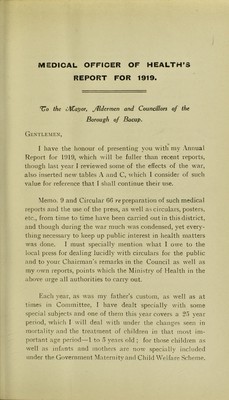 Credit: [Report 1919] / Medical Officer of Health, Bacup Borough. Source: Wellcome Collection.
