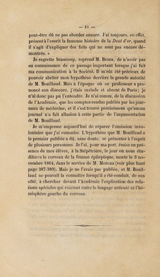 Du siége de la faculté du langage articulé dans l'hémisphère gauche du cerveau / par Paul Broca.
