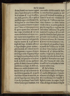 Credit: Recettario di Galeno ottimo e probato a tutte le infirmitadi che accadeno a gli huomini et a le donne di dentro e di fuori li corpi. Con remedio di conservar la sanita e prolongar la vita, e con molte altre cose che nelli altri prima stampati non erano, et con molte belle altre recette contra la peste / Tradotto in volgare per ... Zoane Saracino. Source: Wellcome Collection.