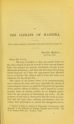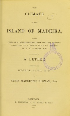 The climate of the island of Madeira, or the errors & misrepresentations on this subject contained in a recent work on climate by T.H. Burgess, M.D. : considered in a letter addressed to George Lund, M.D. / by James Mackenzie Bloxam.