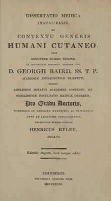 Dissertatio medica inauguralis, de contextu generis humani cutaneo / [Henry Ryley].