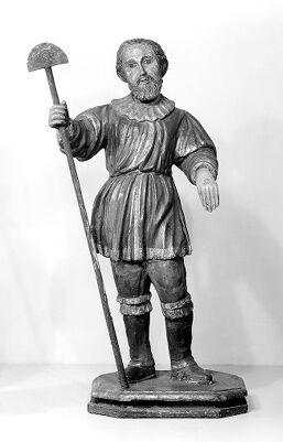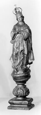 M0014087: Statue of the Madonna trampling on a serpent whilst standing on the moon / M0014088: Statue of Saint Isodore of Madrid / M0014089: Statue of Saint Lucy (also Saint Lucia)