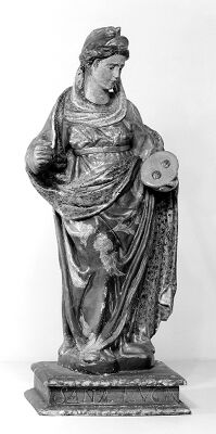 Credit: M0014087: Statue of the Madonna trampling on a serpent whilst standing on the moon / M0014088: Statue of Saint Isodore of Madrid / M0014089: Statue of Saint Lucy (also Saint Lucia). Source: Wellcome Collection.