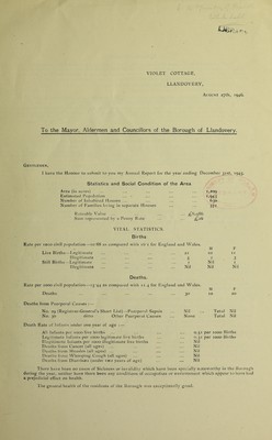 Credit: [Report 1945] / Medical Officer of Health, Llandovery Borough. Source: Wellcome Collection.