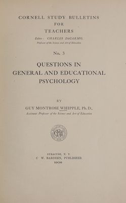 Questions in general and educational psychology / by Guy Montrose Whipple.