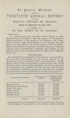 [Report of the Medical Officer of Health for St. Pancras, Metropolitan Borough].