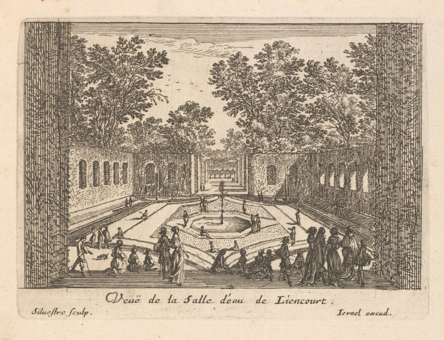 Credit: The Salle d'eau in the gardens at Liancourt. Etching by I. Silvestre. Source: Wellcome Collection.