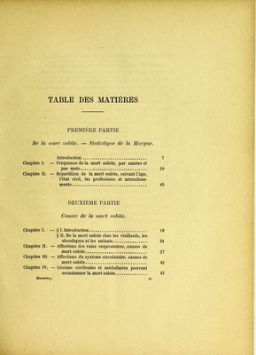 Credit: De la mort subite : statistique de la Morgue de 1871 à 1884, causes et observations : thèse pour le doctorat en médecine présentée et soutenue le jeudi 26 novembre 1885, à 1 heure à la Faculté de médecine de Paris / par L. Marevéry ; président, M. le professeur Brouardel ; juges MM. Panas, Raymond, Bouilly. Source: Wellcome Collection.