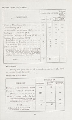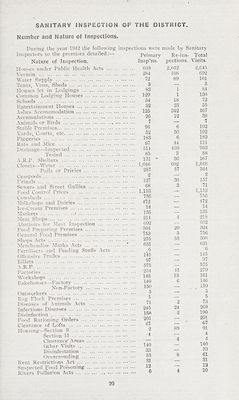 ![INSPECTION AND SUPERVISION OF FOOD. There were 75G visits made to 103 Registered Cowsheds and 172 visits to dairies and inilkshops. Structural improvements were made to <lairy jiremises at one farm during the year, vSeventy-seven samples of undesignated milk were obtained for cleanliness' tests, 21 of these failed to pass the tests prescribed for “Accredited Alilk.” Thirty-four samples of milk were obtained front bulk suyjplies produced at various farms and sulunitted for examinatioii for the presence of tubercle bacilli, in two cases positive reports were received. One sample of “ Pasteurised ” milk was examined and f<nind free from tubercle, 'There were thirteen licensed producers of .Vccredited iMilk at the end of the year; five of these were also licensed to bottle milk at the farm. In addition one dair}' is licensed to pasteurise milk, one supplementarv licence was granted to sell Pasteurised milk and one for the sale of 'i'uberculin 'Tested milk. T'orly-nine samples of Accredited milk and four sam]:)Ies of Pasteurised milk were taken for srdjmission to the relevant tests, 30 Accredited samples and 3 Pasteurised samjdes were reported satisfactory. Four samples of Pasteurised milk were submitted to the j^hosphotase tests and were reported satisfactory. 'i'he Divisional Veterinarv Inspector <■)! the TMinistry of Agriculture and l-'isheries rejtorted 109 visits of inspection to dain.* herds at 56 dairy farms in the Borough during the year, resulting in the removal and slaughter of one bull and five dairy cows suffering from tuberculosis. 3'wo of the cows were inspected as a result of samples of milk taken during retail deliveries in the street> of the town, which were rejjorted to be “ Positive ” by the pathfjlogist ami were subsequently notified to the Ministr}’ of Agriculture and Fisheiies under the provisions of the 'Tuberculosis Order, 1938. Number of Dairy cows at farms in the Borough 1,212 'Total number of cattle at farms in the Borough 1,434 At the end of the A'ear there weT-e 650 food shops recorded in the Registers. 324 visits were made to food preparing premises and shops, . 756 to general food shops, 218 to meat shops and 296 to bakehouses; 19 notices regarding 43 defects tvere served and 13 notices, including 39 defects, were abated during the year at these premises. 'There were 14 vi-its of ins])ections made at-Ice Cream ])rennVes during the year, and- l.'lo visits to the open market. The provisions of the IMerehandise IMarks .\cts in relation to food were generallv complied with, no contraventions being reported. .MEAT IN.SBECriON AT THE ABATTOIR. « 'The Abattoir continues to be used as a ^Ministry uf Food Slaughter- house for the Control .\rea centred on Bury, 'i'he tot.al ]K)pulation served is lSJ,0(tO; the number of meat'shops supplied in the area 280. During the year, 1,907 carca.ses required a detailed ex.amination, and of these 678 were affected with 'Tuberculosis in v.'ir}'ing degree as follows: —Bulls 51.72 per cent., steers 5.97 ])er cent., heifers 7.09 per cent., cows iO.Ot; ]>er cent., pigs 11.-13 per cent. 'The whole carcases of 5 l.>ea^ts, 1 calf and 23 sheej) were condemned, for causes oth.er than tuberculosis. 'The total amount of meat found on ins])eclion to be unfit for human food was 9.95 per dent. f)f the total amount slaughtered. In addition to fresh meat ins])ected the following list c)f im])orted .and meat slaughtered at the ])ort of entry was ins])ected: 23.,117 (juafters .of betf, 97,799 carcases of mutton and lamb, 1,480 carc.ases of jHwk, and 12,552 boxes of offals, etc.](https://iiif.wellcomecollection.org/image/b28968128_0026.jp2/full/800%2C/0/default.jpg)