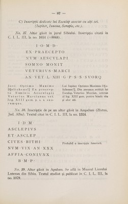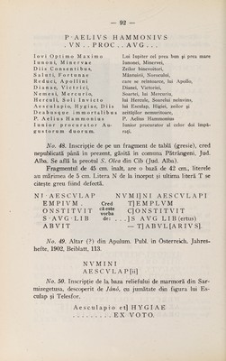 Cultul lui Esculap şi al Higiei (cu specială privire la Dacia Superioară) / de Nicolae Igna.