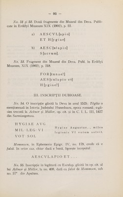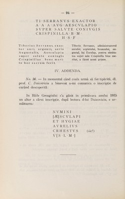 Cultul lui Esculap şi al Higiei (cu specială privire la Dacia Superioară) / de Nicolae Igna.