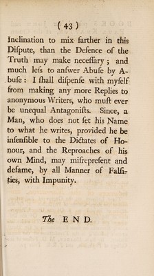 Credit: A letter to the real and genuine Pierce [sic] Dod, M.D. plainly exposing the low absurdity, or malice, of a late spurious pamphlet, falsely ascrib'd to that learned physician. With a full answer to the mistaken case of a natural small-pox, after taking it by inoculation / ... By Dod Pierce, M.S. [i.e. J. Kirkpatrick, etc. pseud.]. Source: Wellcome Collection.