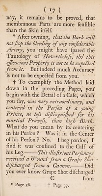 Credit: A letter to the real and genuine Pierce [sic] Dod, M.D. plainly exposing the low absurdity, or malice, of a late spurious pamphlet, falsely ascrib'd to that learned physician. With a full answer to the mistaken case of a natural small-pox, after taking it by inoculation / ... By Dod Pierce, M.S. [i.e. J. Kirkpatrick, etc. pseud.]. Source: Wellcome Collection.
