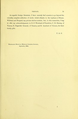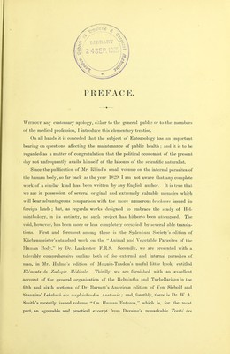 Entozoa : an introduction to the study of helminthology, with reference, more particularly, to the internal parasites of man / by T. Spencer Cobbold.