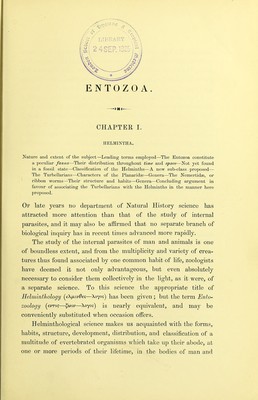 Entozoa : an introduction to the study of helminthology, with reference, more particularly, to the internal parasites of man / by T. Spencer Cobbold.